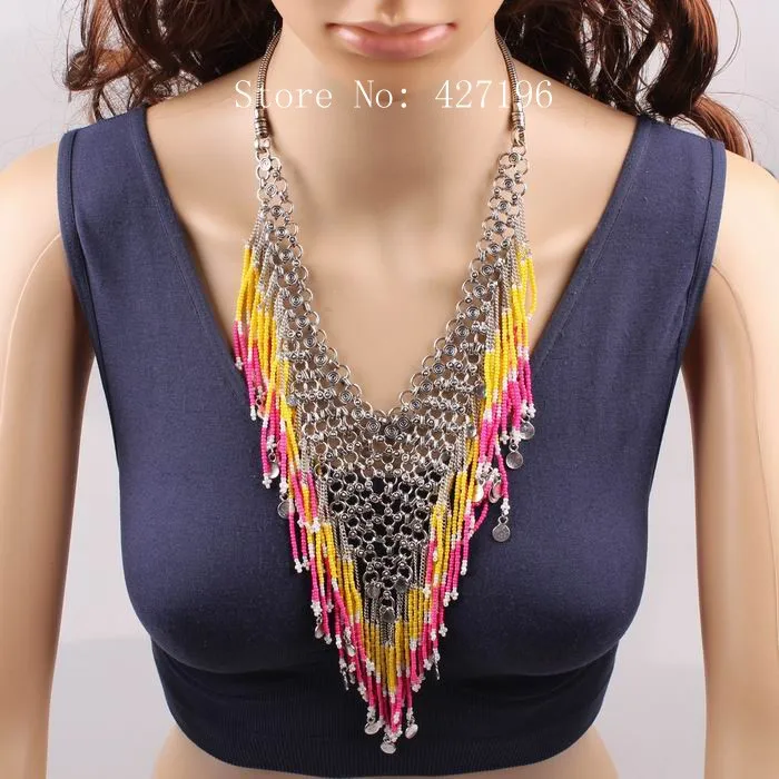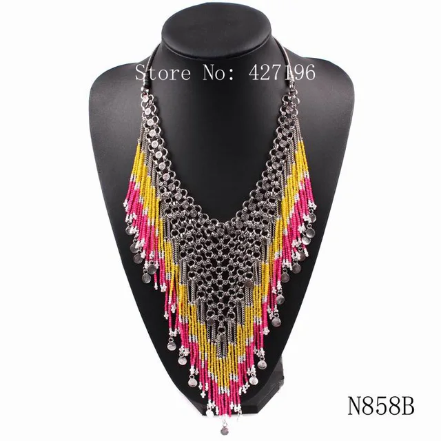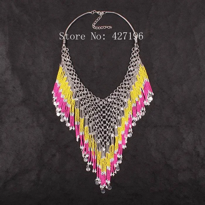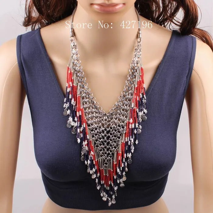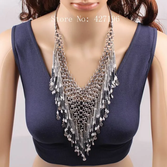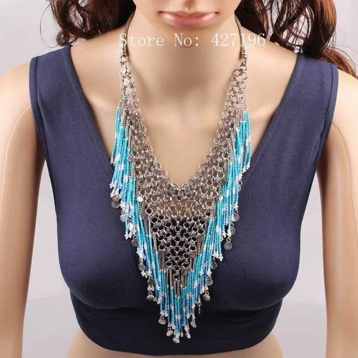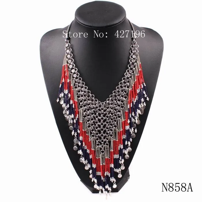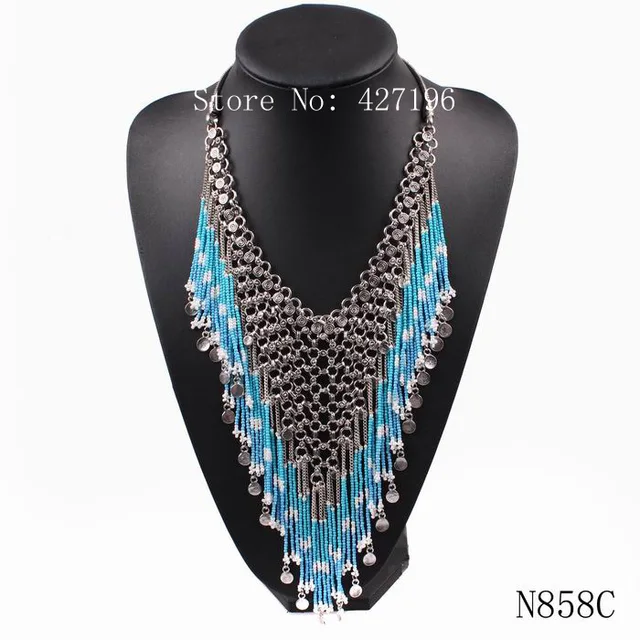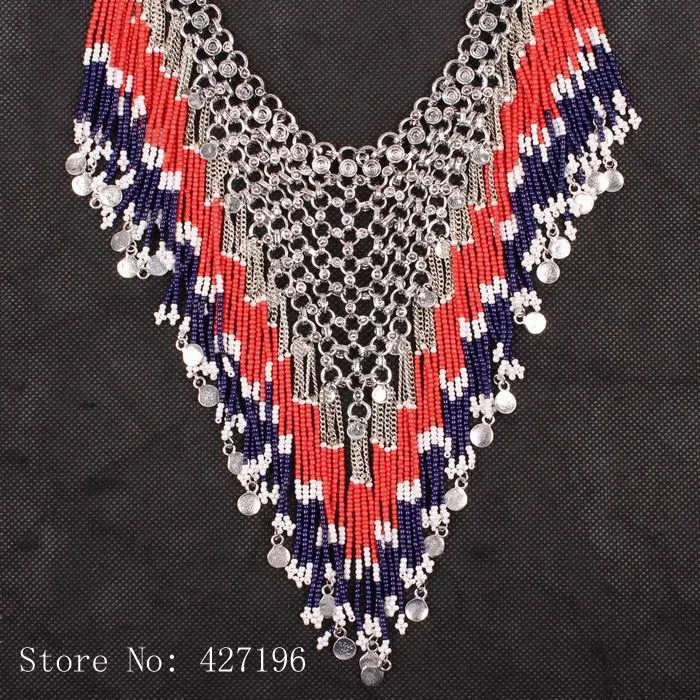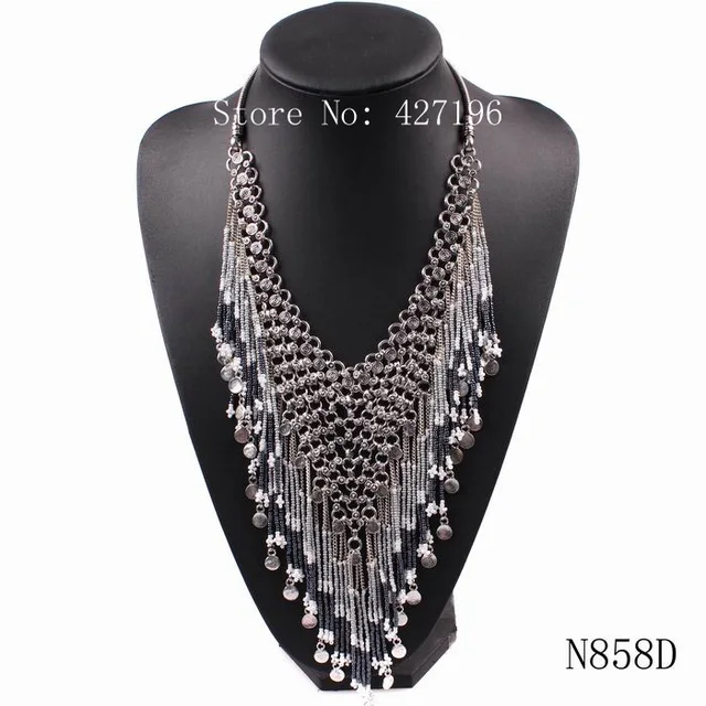 | [해외] 뜨거운 판매 2017 새로운 디자인 패션 브랜드 비즈 술 펜던트 턱받이 체인 문 목걸이 럭셔리 매력 액세서리 |