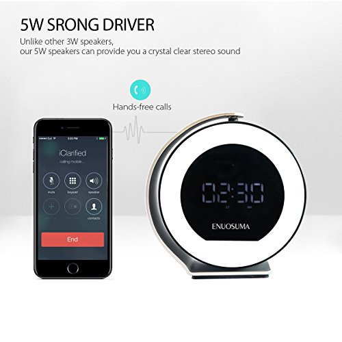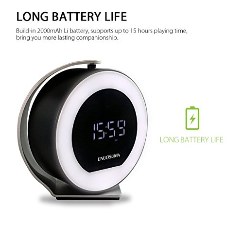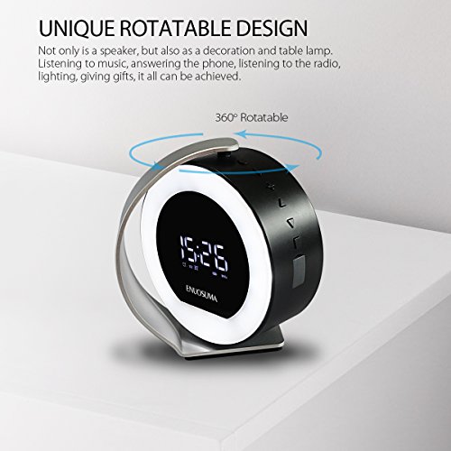 -. Binding : Electronics -. Brand : ENUOSUMA -. Color : Silver -. EAN : 0654070981259 -. Feature : SUPER MULTIFUNCTIONAL 5 IN 1:Bluetooth Speaker+LED Ambient Light+Digital Alarm Clock+FM Radio+AUX input: Connecting with Bluetooth 4.2,higher transmission speed,compatible with all Bluetooth devices.Support FM Radio and AUX input.Stylish simplicity LED table light design,even at night, it will not be dazzling,creates a warm and comfortable environment for you.Wake up by the crisp alarm clock, listen to music, stretch the mood, to embrace the new day / HUGE CAPACITY RECHARGEABLE LITHIUM BATTERY: Wireless Bluetooth Speaker is build-in 2000mAh Li battery,super long playing ,super long lighting,bring you more lasting companionship.Up to 15 hours of play time,just 5 hours charging time,let you get rid of the trouble of prolonged charging completely,enjoy music as much as you like / SUPERIOR SOUND QUALITY: Quiet afternoon, accompanied by speaker emitting melodious songs, enjoy the lazy afternoon sun.This wireless Bluetooth Speaker offer high-performance drivers and 5W speaker with unique enhanced bass,give you a immersive music experience.Support Hands-free calls, it allows you to answer, reject and end calls instead of operating your cellphone.Built-in high sensitivity microphone,like "face to face" conversation, give you a more clear and stable call / SUPPORT THREE PLAY MODES: Bluetooth+AUX-in+FM Radio.Not only it can compatible with Bluetooth devices,but also can be used as Player with AUX input.Wireless Bluetooth Speaker can save 20 stations,you can quickly find your favorite radio station.Three modes to meet you various playing needs / THE BEST GIFT: Designed & Made by ENUOSUMA factory,ABS material body,Hand polished metal base.Delicate touch,looks very grade.It's a best gift for any occasion, such as used for Yoga music player, in friends party,having a romantic dinner,camping outside with family or friends, Christmas Day , Easter Day , Thanksgiving Day , Birthday, anniversary, Mothers Day , Fathers Day , Halloween , wedding, etc -. IsEligibleForTradeIn : 1 -. Label : Yinuo Digital -. Manufacturer : Yinuo Digital -. MPN : E-BS15-SW -. OperatingSystem : Android -. PackageQuantity : 1 -. PartNumber : E-BS15-SW -. ProductGroup : Speakers -. ProductTypeName : PORTABLE_AUDIO -. Publisher : Yinuo Digital -. Studio : Yinuo Digital -. Title : Wireless Bluetooth Speaker with FM Radio & AUX-Input,LED Night Light Bluetooth Speakers with 5W HD Sound Speaker & 2000mAh High Capacity Batt ,360 Degree Rotation,Hands-free Call by ENUOSUMA -- Sliver -. UPC : 654070981259
