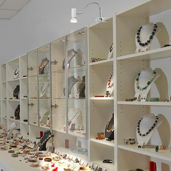 ヘッド部が長いため、LEDランプの口金部分の飛び出しを防ぎ、スッキリとセットすることができます。セードが無く、コンパクトな形状で店舗照明としてもオススメです。プラグ部分は、埃による火災を予防する耐トラッキングカバーと、熱に強い材質を使用しています。 |