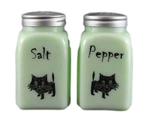 G3291JCAT Jadeite Green Glass Black Cat Roman Arch Jadite Salt & Pepper Shakers