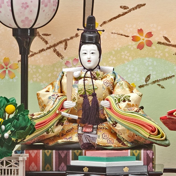 ・台座・屏風等には落ち着いた色目の雛人形セット。
