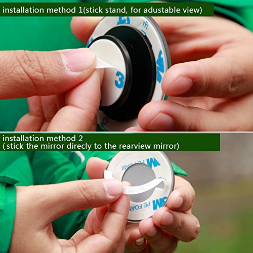 JB AICHE QP01 Rimless Blind Spot Mirror Kit 360 Degree Universal Adjustable Safety Convex Side Small mirrors, 2-Ways Rear View,2" Round Rear View Exterior Set of 2