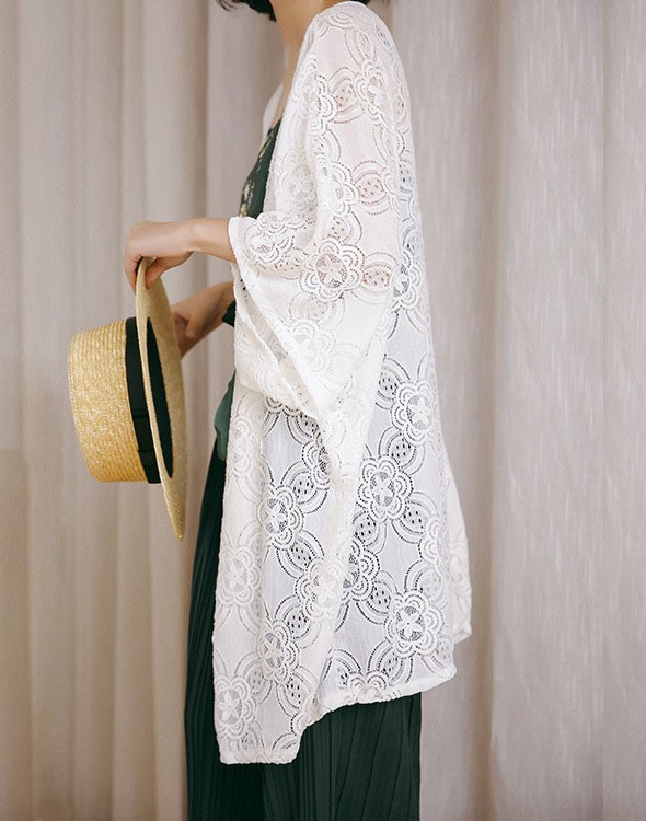 商品名□ゆるシルエット総レースシースルートッパーカーディガンHMS1192#t824t825【予約販売12月下旬より順次発送予定】 【送料無料】トッパーカーディガン 総レース シースルー ゆるシルエット ワイドスリーブ