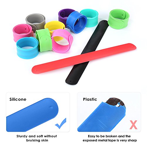 Made from safe and soft silicone thickly coated around quality steel metal coil,these slap bracelets are not easy to be broken, safer and gentler for skin touch than plastic slap bracelets.And the high quality rubber sticky hands with vibrant Color are soft and can be flung onto walls