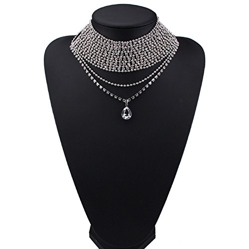 -. Title : Fashion Crystal Water Drop Multilayer Choker Silver Plated Pendant Necklace ,Wedding Jewelry for Women