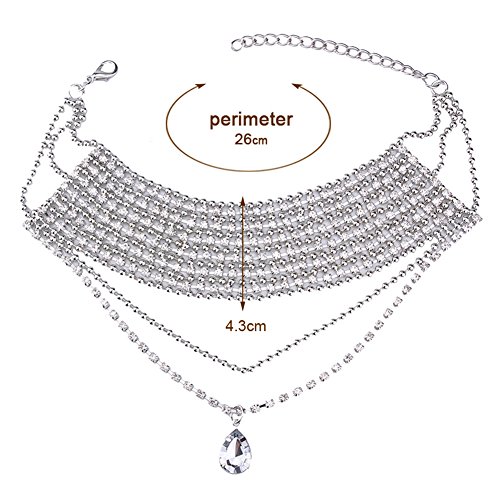 -. Feature : Necklace have Best Quality and Materials.Made of rinestone and alloy to add resistance to tarnish,highly resisted to rust, Comfortable for Skin. / Adjustable Size:The inner diameter is 10 inches, this choker meets most people's neck with an adjustable length of 3 inches.Weight:82g. / Intricate high polish creates glamorous reflections and adds a luxurious look to this necklace,it will not disappoint you! / Occasion: This jewelry set is shinning, beautiful, luxury looking. It is suitable many occasions, such as dance, party, celebration and wedding. This set is an ideal gift for your girlfriend, fiancée, wife, mother or friend. It is also a good choice for engagement or wedding jewelry. / Package included:1 necklace.Please refer to the picture for size details.