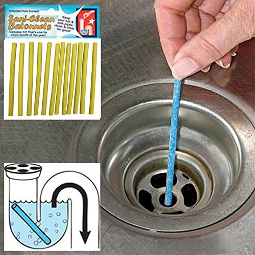 -. Brand : Saniclean -. Color : Yellow -. EAN : 0638827057008 -. Feature : Eliminate embarrassing odors from drains and prevent clogged sinks. / Save money on plumbers and drain snakes as powerful enzymes break down oil and grease to keep drains free and clear. / Keep your drains clean and odor-free, all year long with Sani-Clean as part of your cleaning supplies. / Avoid embarrassing smells and nasty water buildup in sinks and showers with just one Sani-Clean per month -. Label : Sani-Clean -. Manufacturer : Sani-Clean -. Model : 7008 -. MPN : 7008 -. PackageQuantity : 12 -. PartNumber : 7008 -. ProductGroup : Kitchen -. ProductTypeName : KITCHEN -. Publisher : Sani-Clean -. Studio : Sani-Clean -. Title : Sani-Clean Batonnets Drain Cleaner and Deodorizer (Lemon) -. UPC : 638827057008