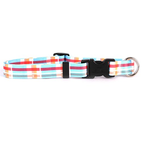 Studio : Yellow Dog Design Publisher : Yellow Dog Design Binding : Misc. Product Description This is the Madras Blue Dog Collar with Tag-A-Long ID Tag System - Size Large - 1 inch wide and fits neck sizes 18 to 28 inches from Yellow Dog Design, made right here in the USA. Keep your dog in the latest fashion with this stylish, functional and durable dog collar. TAG-A-LONG - This brand new, patent pending Pet ID Tag system is built right in to this dog collar. The Tag-A-Long system makes it easy to swap out ID tags from one collar to another, or to change ID Tags on the same collar. Perfect for when a special tag is needed at the dog park, on the beach, or as a service dog. We've included this special feature at no cost! EASY ON EASY OFF - Using a quick release clasp, the collar can easily be taken on or off the dog. Don't worry though, opposable thumbs are necessary to activate the quick release. SIZING: This dog collar utilizes a quick clasp closure, also called a side release clasp. Sizing is given as a range of neck lengths. Measure your dogs neck size or its current collar length (not including buckles) to obtain correct sizing. If you are shopping for designer, affordable dog/pet collars, then look no further. These durable, guaranteed to last dog collars have no rough edges, no threads to fray or break, no problem going in the wash, and no stress getting them on or off your dogs. 0