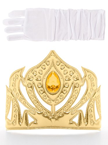 The Little Adventures Princess Headband/Headpiece & Glove/Cape Accessory Sets for Girls are the perfect additions to complete your pretty princess. The durable headbands are adorned with high quality materials and are made to coordinate with our adorable dress up costumes. The flexible headband allows for a comfortable fit on a variety of sizes. The elbow length gloves are a perfect accessory to any of our beautiful princess dress ups. They also work well for parties, weddings or special occasions. The quality fabric is very stretchy to comfortably fit a variety of sizes. The soft princess crowns feature foil over foam for the perfect level of comfort. Each crown is adorned with a matching jewel at the center. Style: Cinderella (w/ Headband, Choker, and White Gloves). Little Adventures is Not Affiliated w/ Disney, Frozen, Elsa, Anna, Tiana, Belle, or Disney Movies or Characters. Available in One-Size (3+ Yrs)Feature