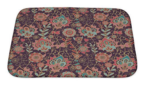 Gear New No Slip Microfiber Memory Foam Paisley Floral Pattern with Flowers Bath Rug Mat, 24" X 17"