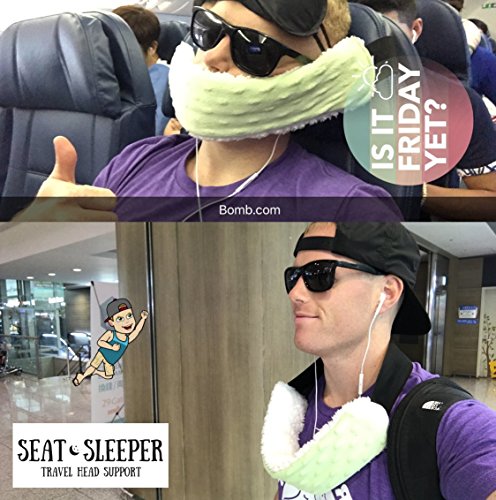 Product Description The Seat Sleeper Travel Pillow is a new innovating type of travel pillow that is designed to wrap around your headrest to keep you upright while sleeping so you can sleep comfortably and relaxed without head bobbing. Ultra cozy - your face will love it. Made with a unique blend of premium 80% acrylic 20% terelyne polyester. Stylish, small lightweight - Not bulky like other travel pillows so you can travel with your Seat Sleeper in any small purse, backpack or travel bag. Our soft fleece design has a different soft material on each side - pick your favorite! Either short pile, or plush polyester fleece. We selected the most soft and cozy materials so you can wake up without marks on your skin. PERFECT FOR: ? Nomadic Travelers ? Road Trips ? Traveling Business People ? Long flights ? A quick nap in your car! ? Adjustable size: easily shorten or lengthen the buckle strap to fit almost any plane or car headrest - up to approx 4-feet maximum total length. ? Easily washed. We are a small business Based in Seattle we provide personal customer support and listen to every review. Try our new product worry-free - Love it or your money back! Limited Availability! - Click 'Add to Cart' while we're still in stock! 0