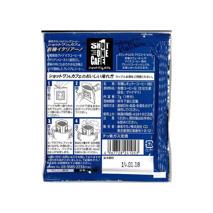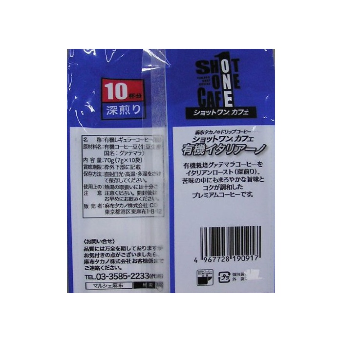 원본상품명: タカノコ?ヒ? ショットワンカフェ有機イタリア?ノ 10杯