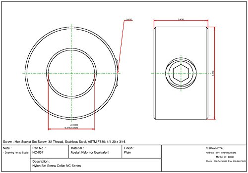 Climax Metals NC-037X10 Shaft Collar with 1/4"-20" x 3/16" Set Screw, Set Screw Style, One Piece, Nylon, 3/8" Bore, 3/4" OD, 7/16" Width (Pack of 10)