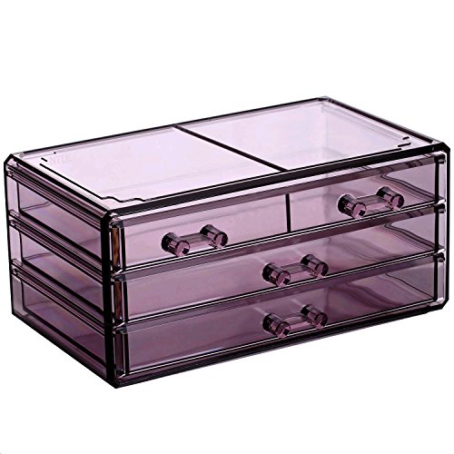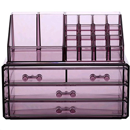 You Don't Have to Be a Makeup Artist to Have a Professional Cosmetic Organizer! Let's keep your cosmetics neat and tidy with this acrylic makeup display case. ? The top section contains 4 compartments with various sizes and a lipstick rack for holding up to 12 lipsticks. ? The bottom sections consists of two drawer sets, one with 4 drawers, the other with 3 drawers. ? Removable black mesh padding keeps jewelry protected and in place. ? Made of clear acrylic, providing a clear view of your collections. ? Overall Dimensions: 9 3/8"W x 5 3/8"D x 7 1/4"H. What You Can Do with This Acrylic Makeup Case ? Makes a perfect gift. ? Keeps your collection in place and ready to use. ? Saves your precious space. 0 |