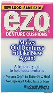 -. Feature : Ezo Denture Cushions Lower Heavy, 15 Count Per Pack (11 Pack) / Helps recreate the natural vacuum that keeps dentures in place, A temporary aid to hold loose dentures / No unpleasant odor, taste or mess / Vacuum grip for better fit and hold / Makes old dentures fit like new again