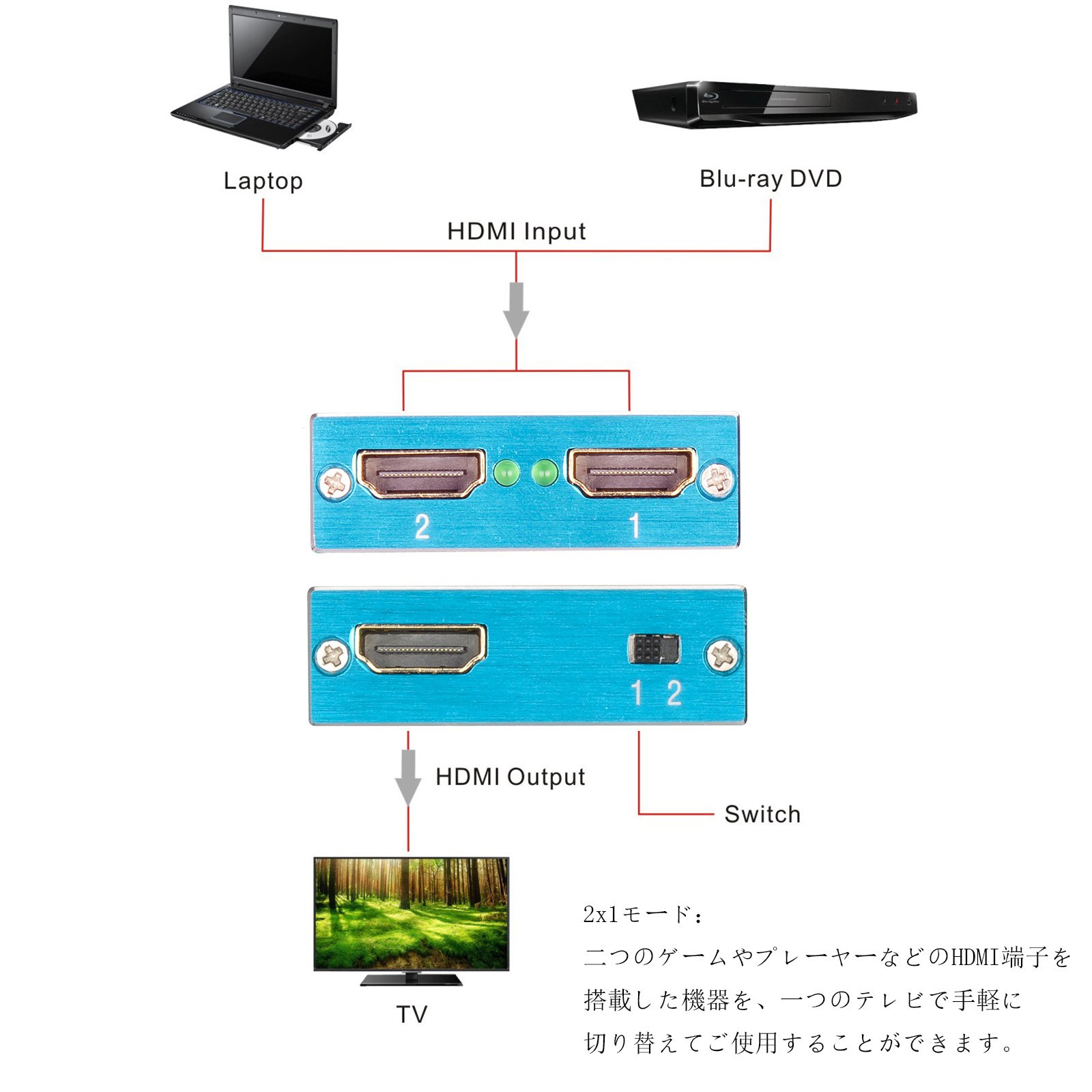 Equipments with HDMI terminals such as two games and players can be easily switched and used on one TV.