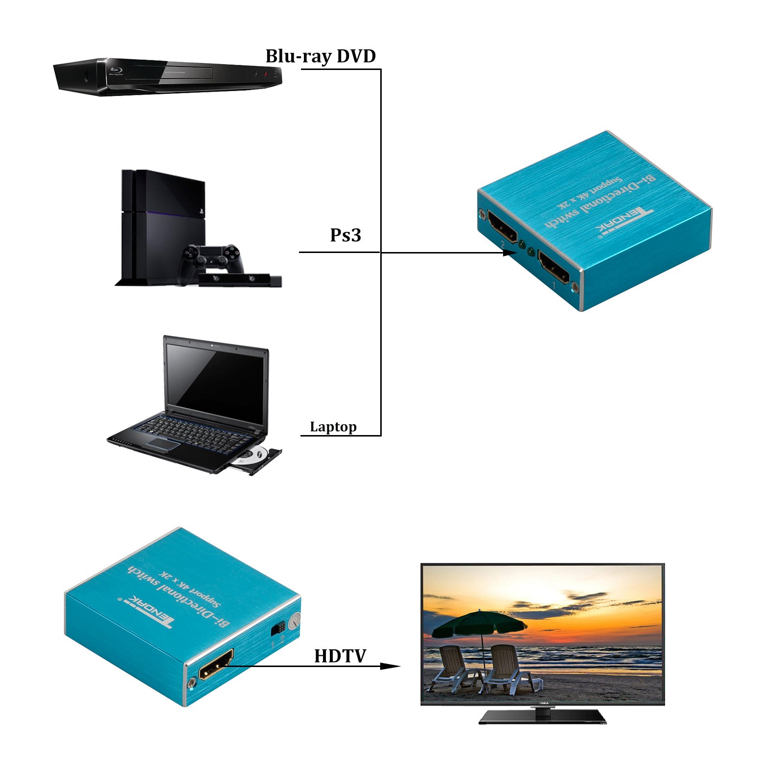 4 Kx 2 K bi-directional 1 input 2 outputs / 2 input 1 output HDMI switching device HDMI distributor hdmi selector hdmi 2.0 power supply unnecessary HDCP compatible 3D support