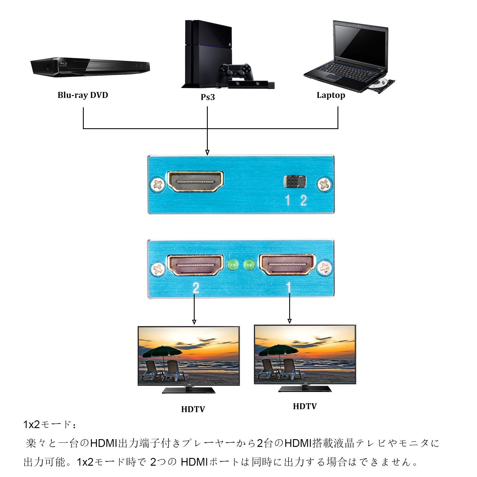Easily output from one HDMI output terminal player to two HDMI-equipped LCD TVs and monitors.