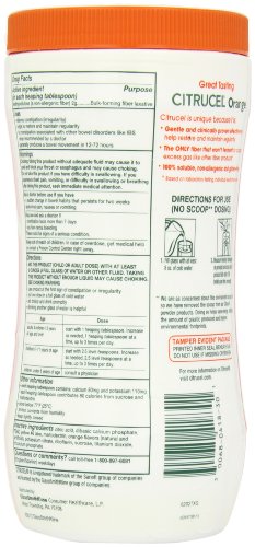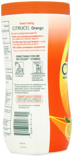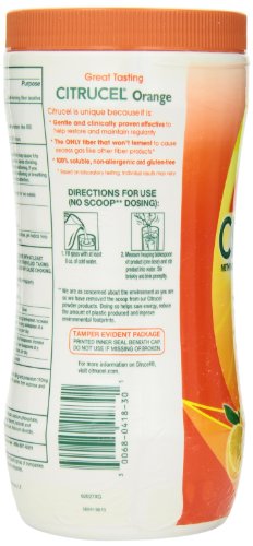 -. Binding : Health and Beauty -. Brand : Citrucel -. EAN : 0885321950377 -. Feature : A smooth, non-gritty therapeutic fiber derived from a natural source / Encourages gentle elimination naturally, without chemical stimulants / Doctor recommended for restoring and maintaining regularity / Great tasting orange flavor; mixes easily / Please read all label information on delivery -. Label : Citrucel -. LegalDisclaimer : Actual product packaging and materials may contain more and/or different information than that shown on our Web site. We recommend that you do not solely rely on the information presented and that you always read labels, warnings, and directions before using or consuming a product. Content on this site is for reference purposes and is not intended to substitute for advice given by a physician, pharmacist, or other licensed health-care professional. You should not use this information as self-diagnosis or for treating a health problem or disease. Contact your health-care provider immediately if you suspect that you have a medical problem. Information and statements regarding dietary supplements have not been evaluated by the Food and Drug Administration and are not intended to diagnose, treat, cure, or prevent any disease or health condition. ABC Wholesale assumes no liability for inaccuracies or misstatements about products. -. Manufacturer : Citrucel -. Model : 041830 -. MPN : 041830 -. NumberOfItems : 2 -. PackageQuantity : 2 -. PartNumber : 041830 -. ProductGroup : Health and Beauty -. ProductTypeName : HEALTH_PERSONAL_CARE -. Publisher : Citrucel -. Studio : Citrucel -. Title : Citrucel Fiber Therapy, Orange, 30-Ounce Canister (Pack of 2) -. UPC : 300680418301