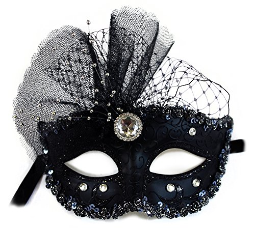 -. Feature : Pamela is Radiant. A beautiful and comfortable resin mask is trimmed with sequin braid, nettings, a shimmering bead spray, a brilliant rhinestone brooch, and a sprinkle of crystal jewels. / A bygone day look of elegance. / The mask is a smooth inside, lighweight and comfortable to wear. / Secures with ribbons / Each mask is our original design and hand decorated in the USA by our talented artists. We pack our masks with special care.