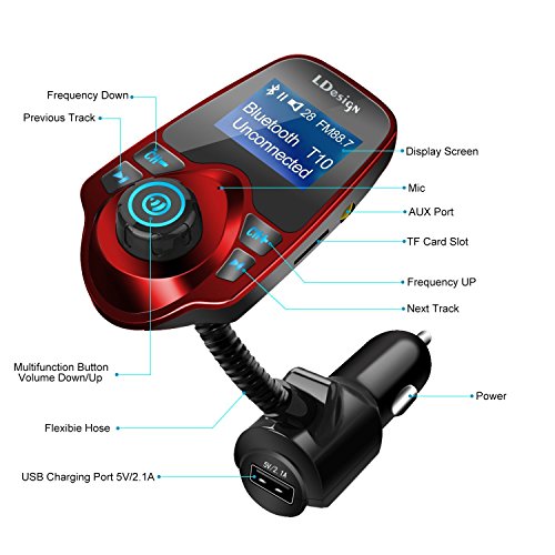 Bluetooth FM Transmitter: A car MP3 player with Bluetooth car kit, which can transmit audio /music from TF card and cell phones to car FM stereo system; with Bluetooth A2DP streaming function.