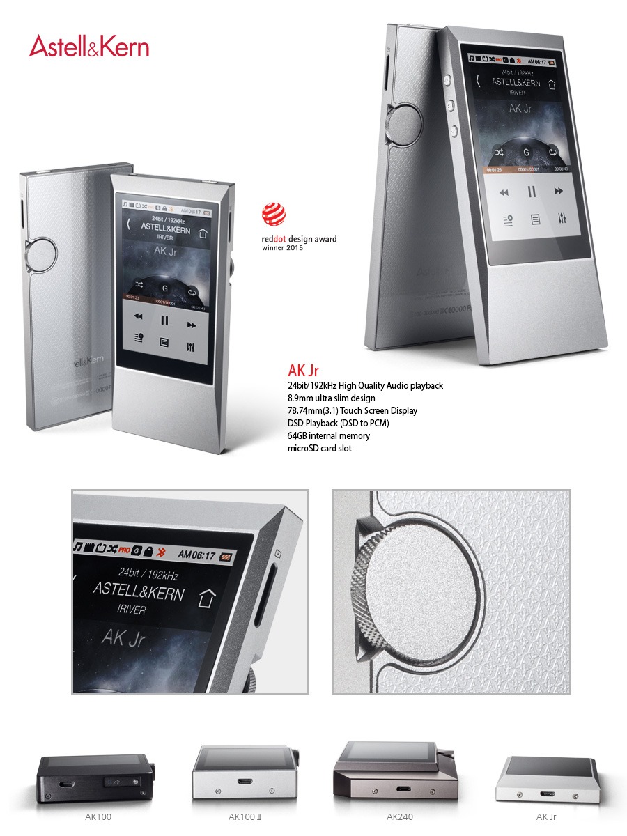 iRiver ASTELL KERN AK JR 3.1in LCD Touch screen 64GB, MQS music player USB DAC