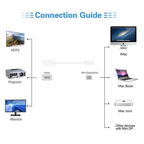 LENTION Thunderbolt Mini DisplayPort to HDMI Adapter Cable Converter Hub for Apple MacBook Pro Air Mac Mini Pro iMac, Surface Pro 1 2 3 4 and Other Devices with Mini DP