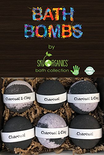 Charcoal Bath Bombs Gift Set by Sky Organics, 6 x 5 Oz Ultra Lush Huge BLACK Bath Bombs, Aromatherapy, Relaxation, Moisturizing with Natural Essential...