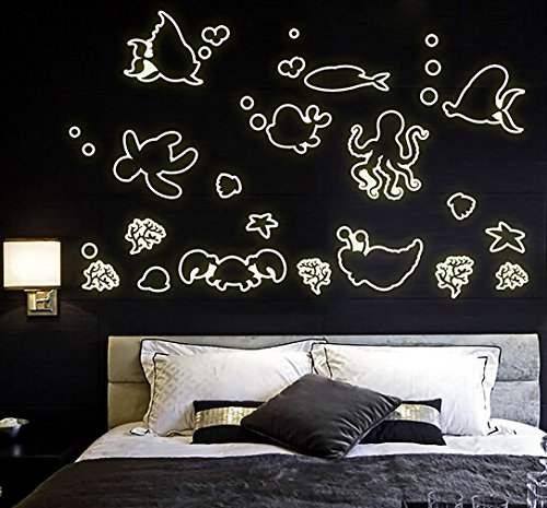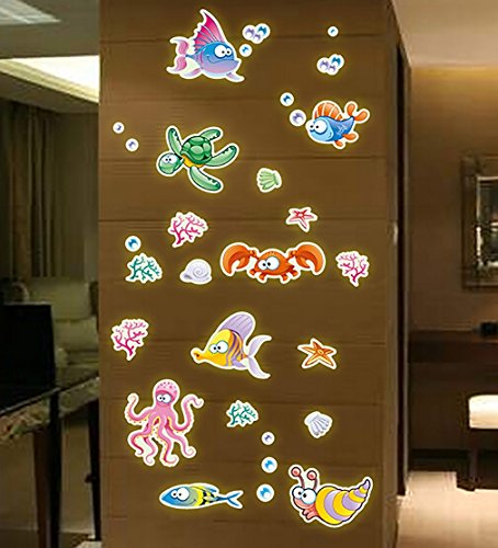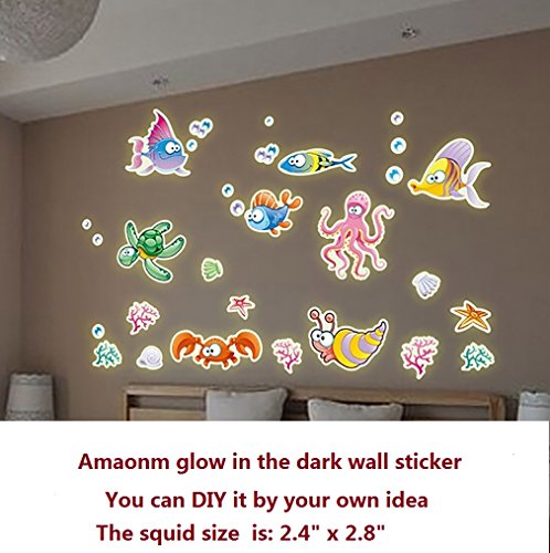 Amaonm Removable Glow in the Dark Underwater Sea World Cute Cartoon Animals Luminous Light Florescent Wall Decal Sticker Murals for Kids Babys Children's Room Bedroom Bathroom Study Room Light Switch