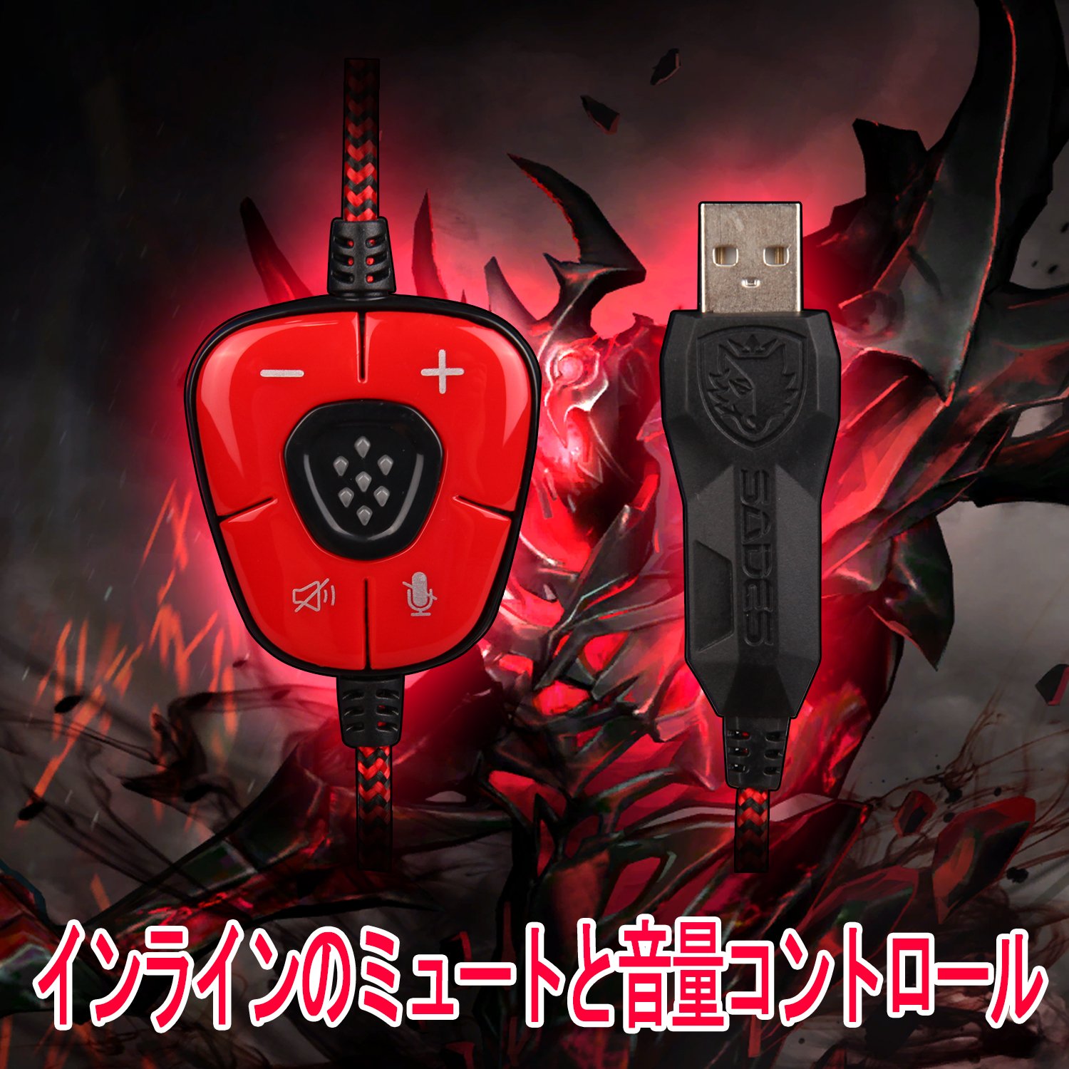 SADES SA-901 PS4 gaming headset 7.1ch surround sound stereo high-quality bass both ears overhead USB connection (black × red)