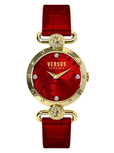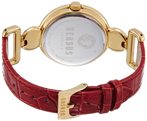 -. Binding : Watch -. Brand : Versus by -. Department : womens -. EAN : 7630030504648 -. Feature : Citizen 2025 Quartz movement; 4 Swarovski crystal indices / IP yellow gold stainless steel case / Quartz Movement / Case Diameter: 34mm / Water Resistant To 99 Feet -. Label : First SBF Holding Inc. -. Manufacturer : First SBF Holding Inc. -. Model : SOL030015 -. MPN : SOL030015 -. PartNumber : SOL030015 -. ProductGroup : Watch -. ProductTypeName : WATCH -. Publisher : First SBF Holding Inc. -. Studio : First SBF Holding Inc. -. Title : Versus by Women's SOL030015 Sunnyridge Analog Display Quartz Red Watch