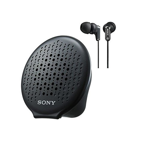 Inner ear headphones attached with a carrying case with a speaker that can be used as a speaker by connecting with a portable audio player.