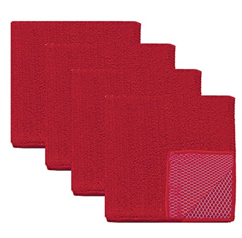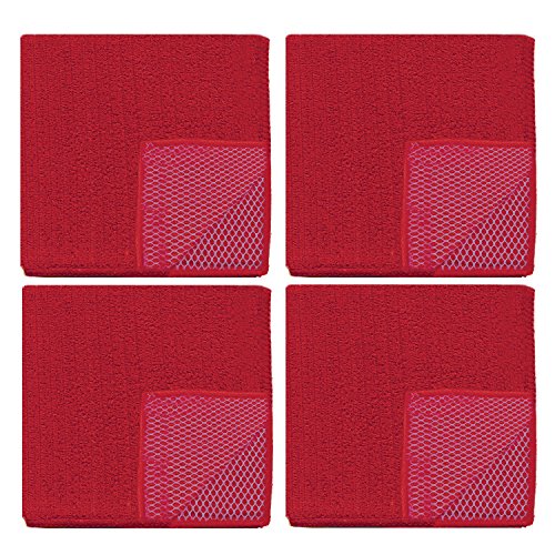 GOURMET PRO Gourmt Pro Solid 4 Pack Scrubber Dish Cloth 4, 12x12, Red, 4 Piece