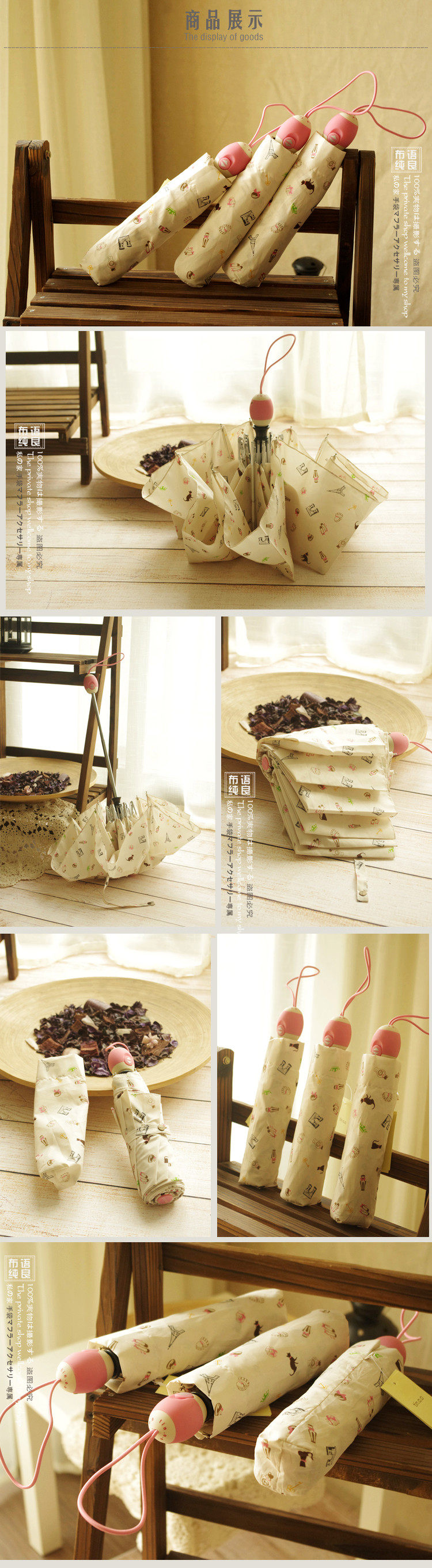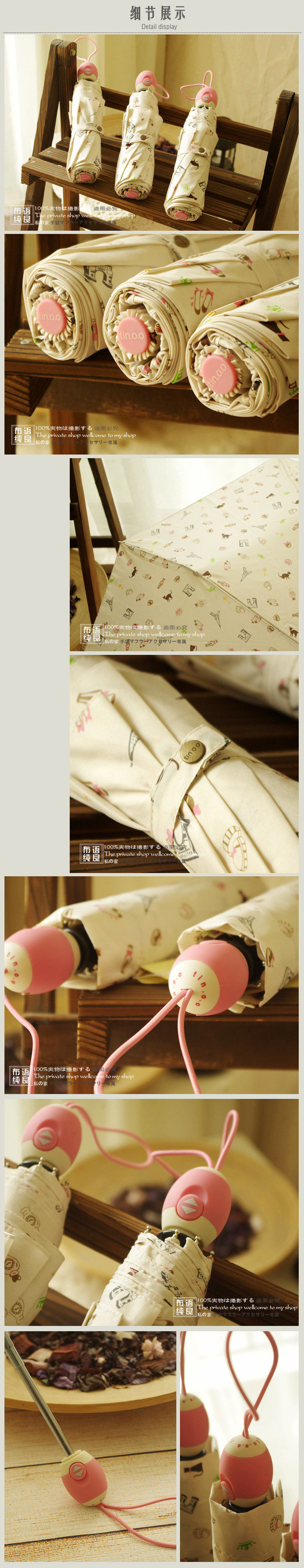 2014 new start Japan Zakka wind fashion illustration three folding automatic umbrella for sun and rain with With meow star cat shoes Eiffel Tower Triumphal Arch pattern