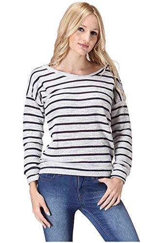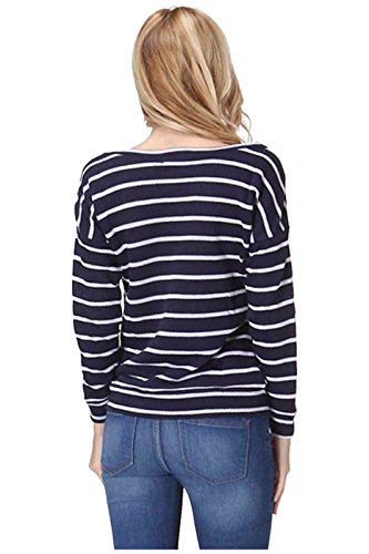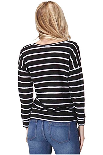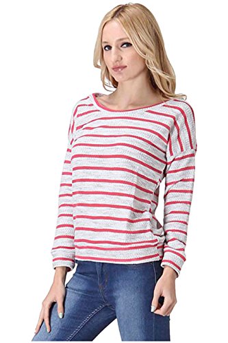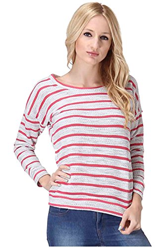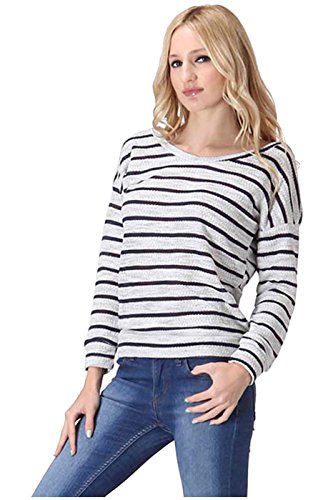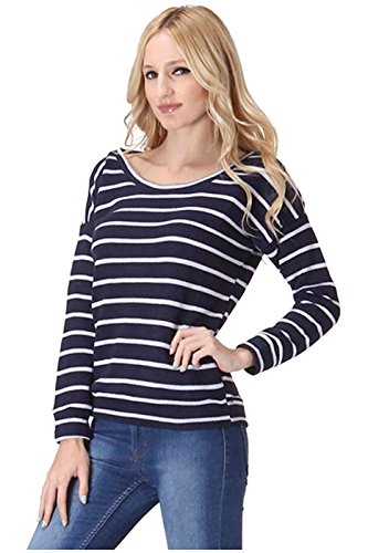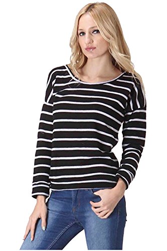 Product DescriptionThis top features a scoop neck, long sleeves, stretch knit fabric, striped print, and a relaxed fit silhouette. Which will go great with a pair of skinnies, tall boots, and a faux fur vest for a trendy, casual day look.0