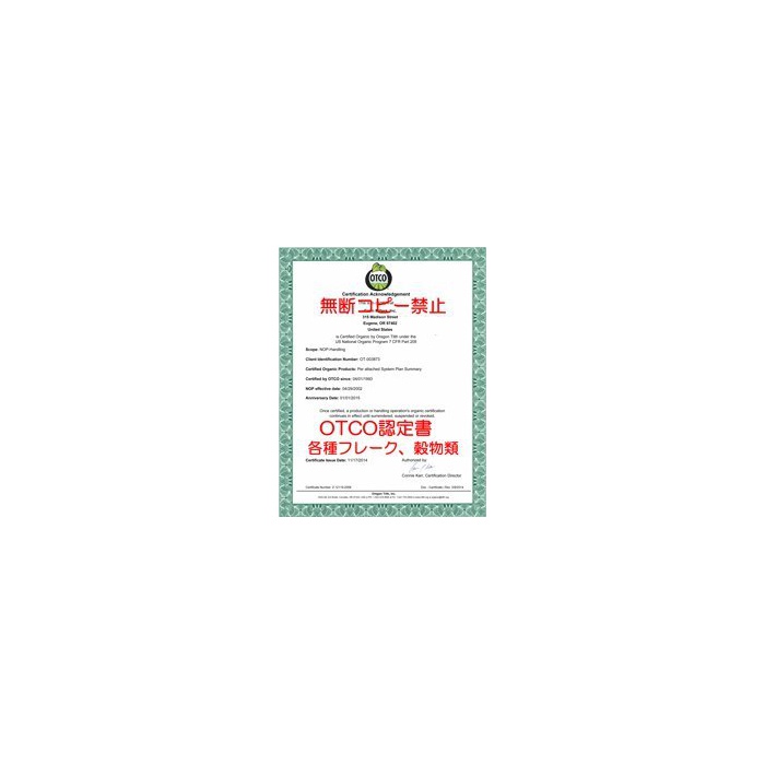 원본상품명: 化?農?不使用栽培 大?フレ?ク 2kg OTCO認定品 製パン、?穀米、グラノ?ラの材料として加熱してご利用ください Barley Flakes