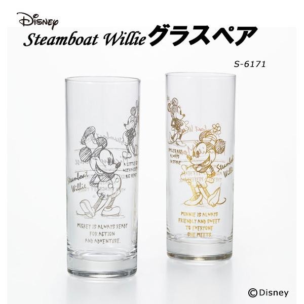 | 「スチームボートウィリー」のミッキー柄グラスペアセット。 |