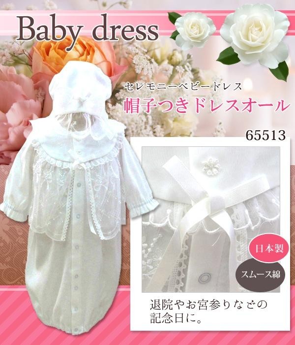 | オーガンジーレースを使った白いフード付きドレスオールです。 |