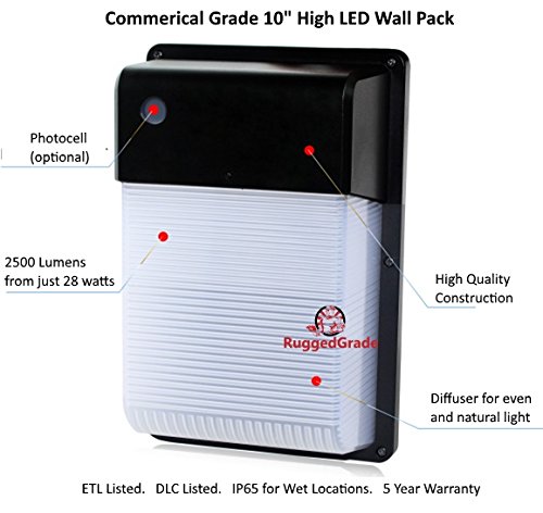 2,790 Lumen LED Wall Light with Dusk to Dawn Photocell– Only 28 Watts – 10” High LED Wall Pack– 5000K Bright White – 20 Year Life LED – Outdoor LED Wall Light – ETL & DLC Verified