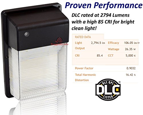 BRIGHT LIGHT – Independently Certified by DLC! The 28 watt was rated at 2,794 Lumens. 2,794 Lumens can replace a 100 Watt METAL HALIDE light, 60 Watt CFL or 250watt Incandescent. 5000K light color ensures a bright clear light. 85+ CRI for great light quality.