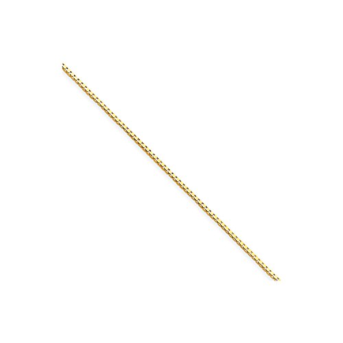 SPECIFICATIONS: Jewelry Type: Anklets, Chain Type: Box, Anklet Type: Chain Styles, Material: Primary: Gold, Material: Primary - Color: Yellow, Material: Primary - Purity: 14K, Finish: Polished, Chain Length: 9 in, Chain Width: 0.9mm, Clasp /Connector: Lobster