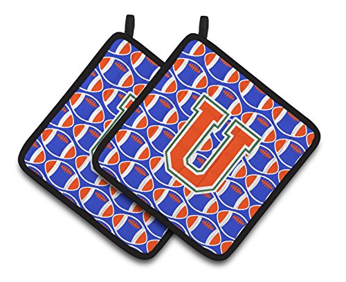 Caroline's Treasures Letter U Football green, Blue & Orange Pair of Pot Holders CJ1083-UPTHD, 7.5HX7.5W, Multicolor