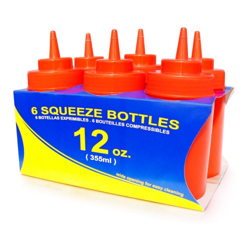 New Star Foodservice 26023 Squeeze Bottles, Plastic, Wide Mouth, 12 oz, Red, Pack of 6