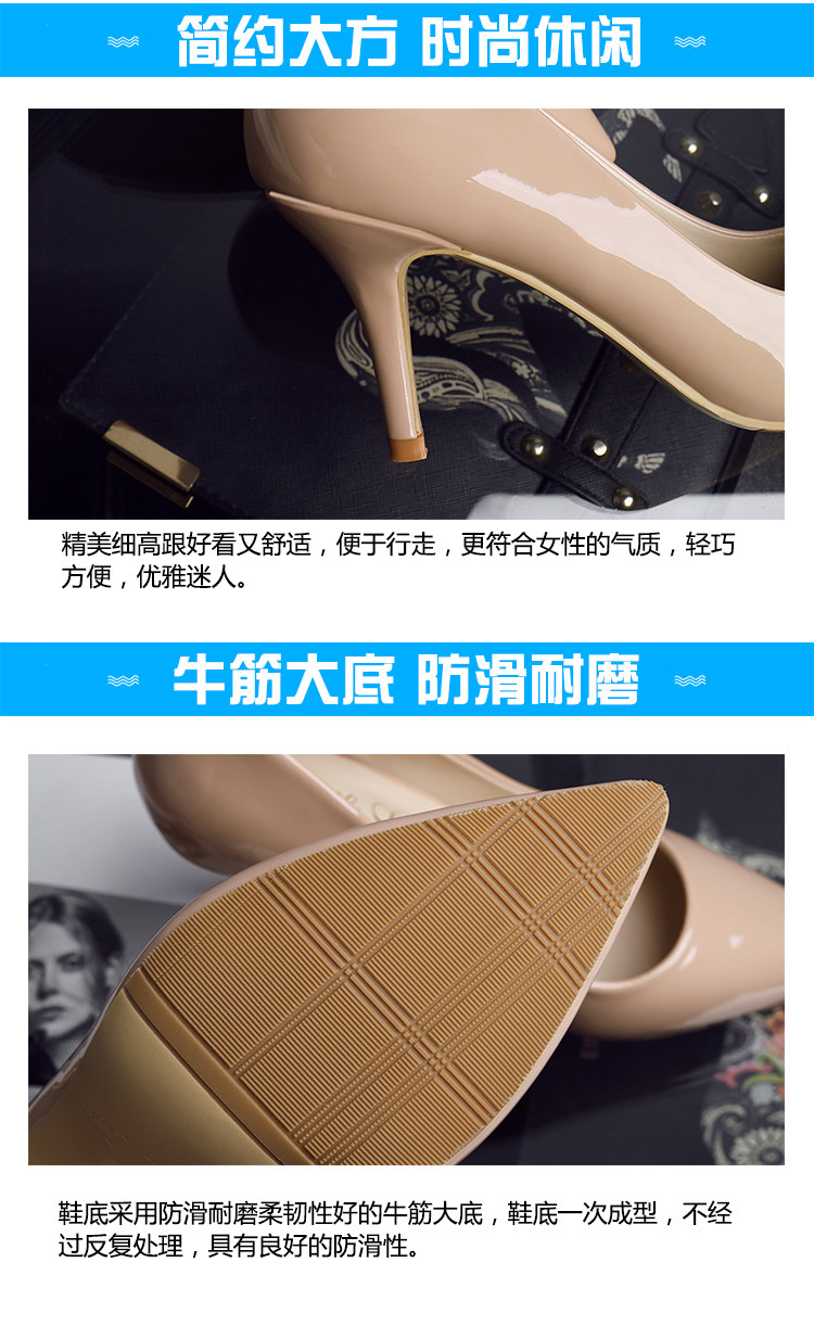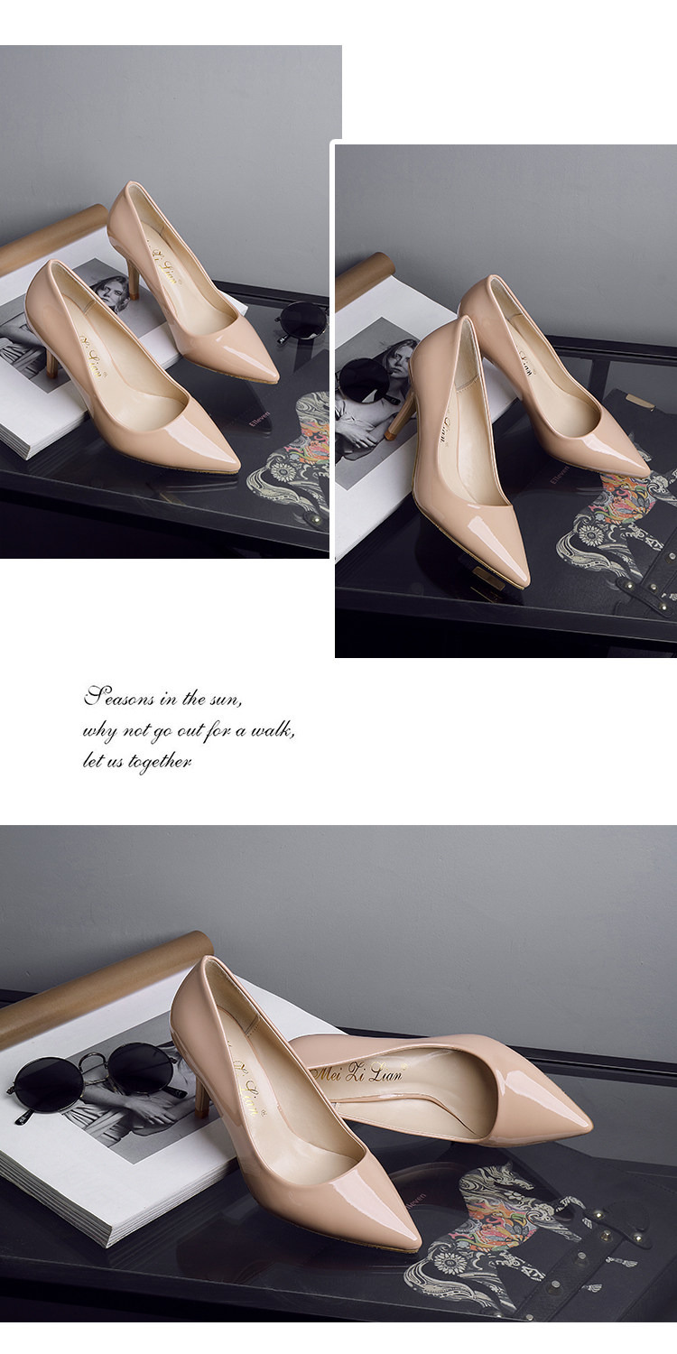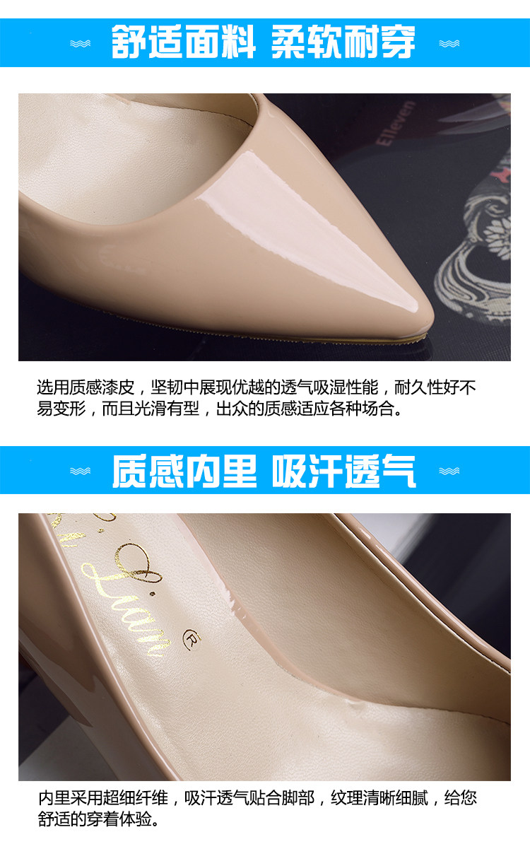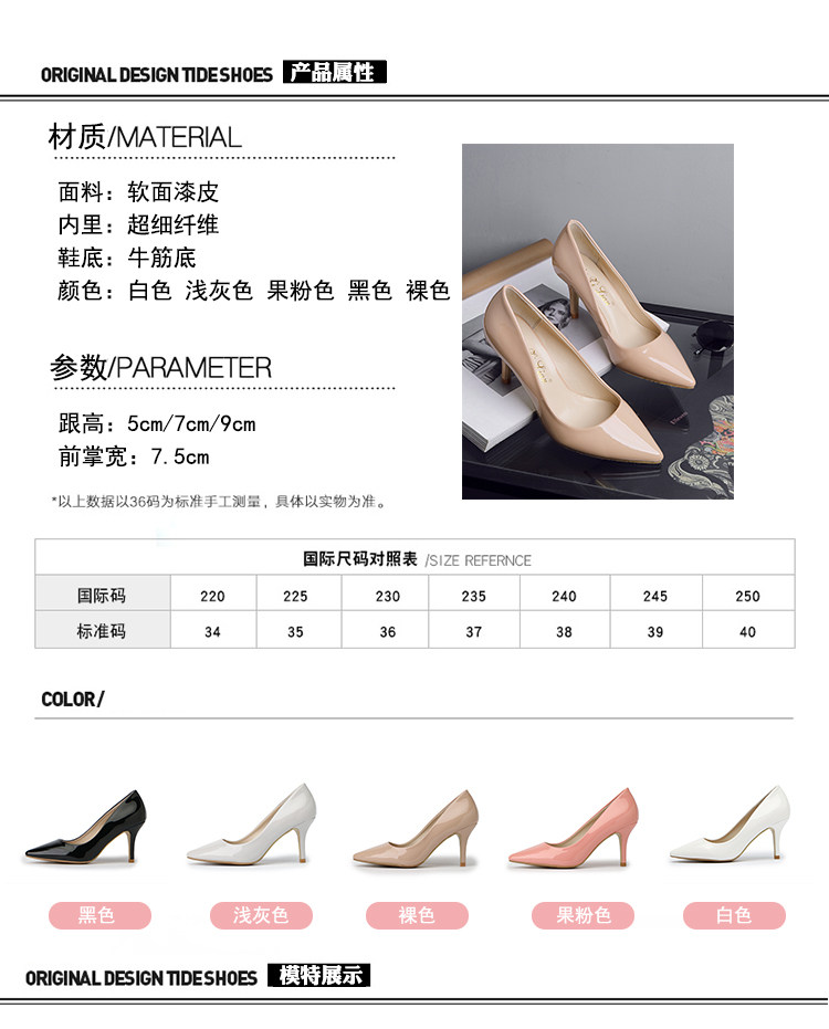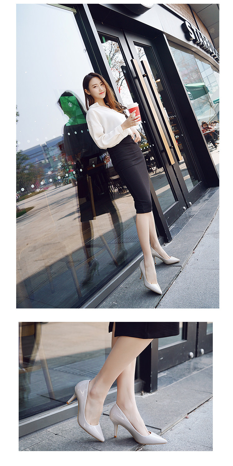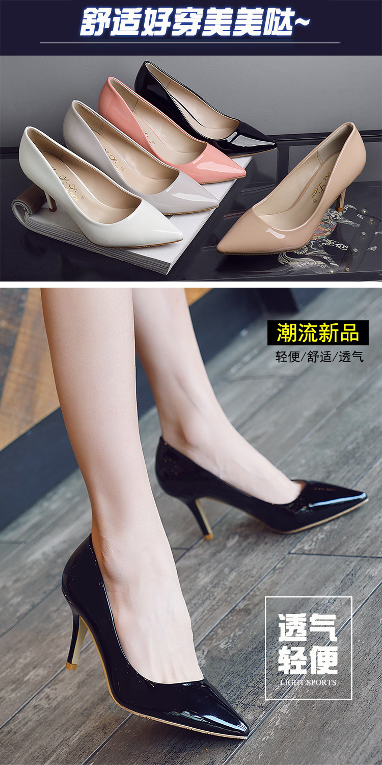 春季裸色尖头细跟高跟鞋中跟黑色工作女单鞋浅口伴娘婚鞋