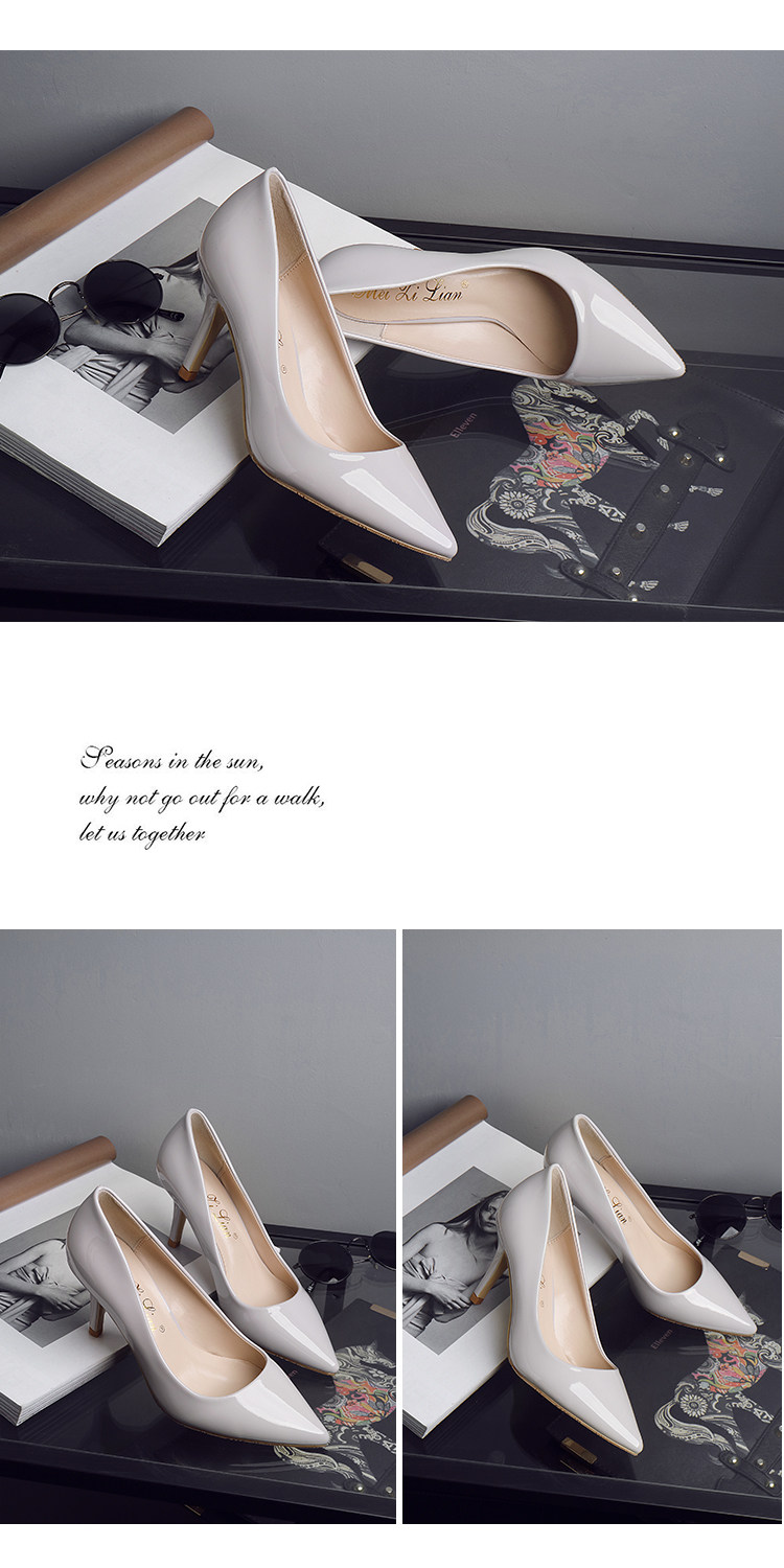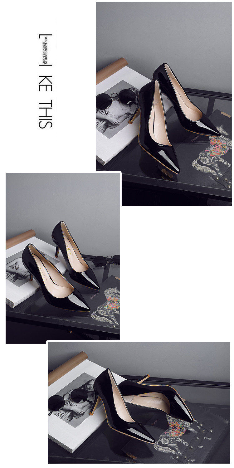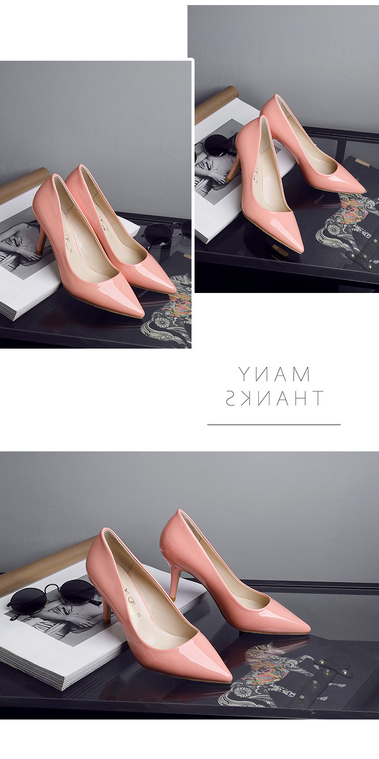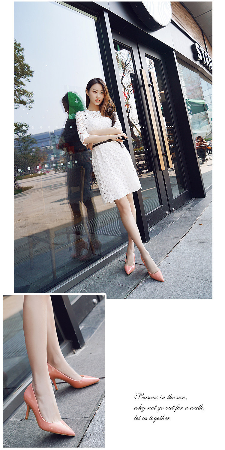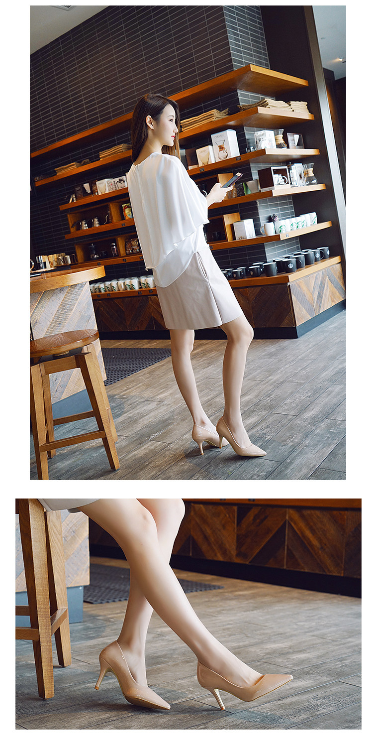 春季裸色尖头细跟高跟鞋中跟黑色工作女单鞋浅口伴娘婚鞋