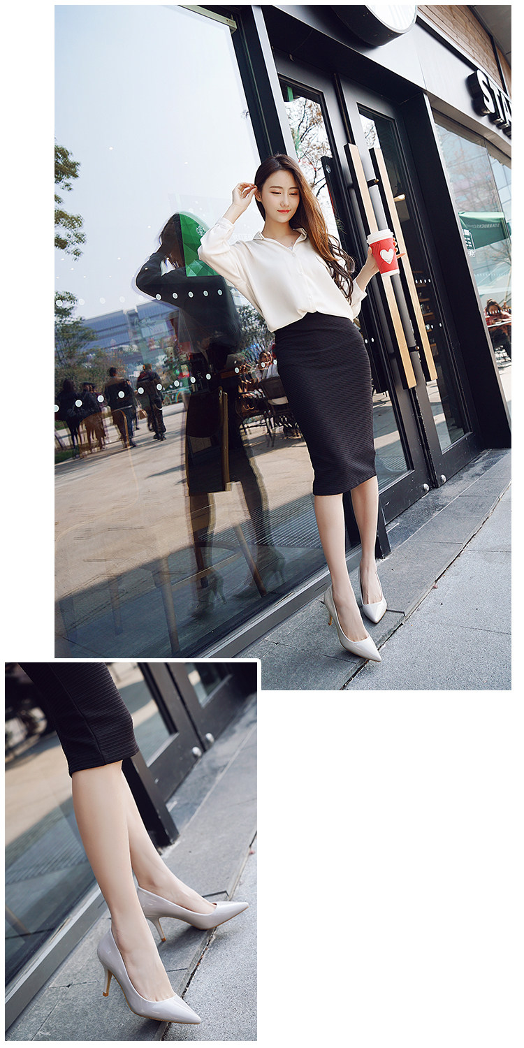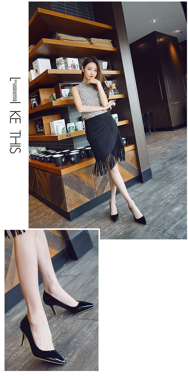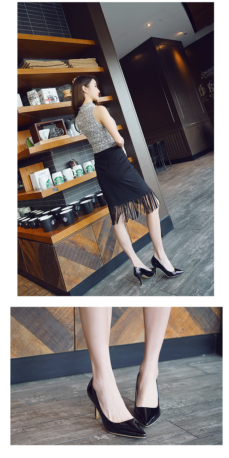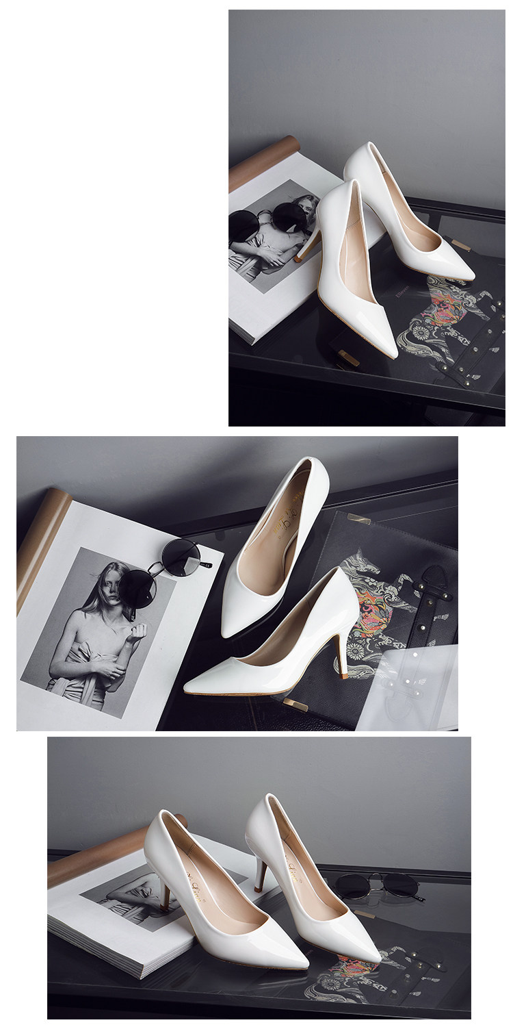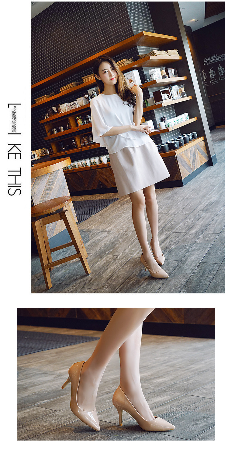 春季裸色尖头细跟高跟鞋中跟黑色工作女单鞋浅口伴娘婚鞋