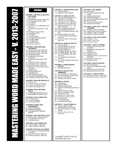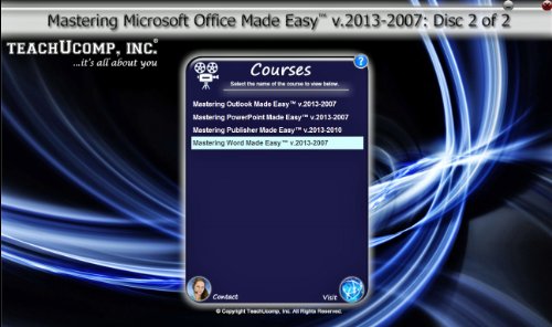 Learn Microsoft Office 2013 and 2010 with this comprehensive course from TeachUcomp, Inc. Mastering Microsoft Office Made Easy features 786 video lessons with over 42 hours of introductory through advanced instruction. You get our complete courses in Access, Excel, OneNote, Outlook, PowerPoint, Publisher and Word. Watch, listen and learn as your expert instructors guide you through each lesson step-by-step. During this media-rich learning experience, you will see each function performed just as if your instructor were there with you. Reinforce your learning with the text of our fifteen printable classroom instruction manuals (Introductory, Intermediate and Advanced), additional images and practice exercises. This complete Microsoft Office course covers the same curriculum as our classroom trainings and was designed to provide a solid foundation in Office. Whether you are completely new to Microsoft Office or upgrading from an older version, this course will empower you with the knowledge and skills necessary to be a proficient user. We have incorporated years of classroom training experience and teaching techniques to develop an easy-to-use course that you can customize to meet your personal learning needs. Simply insert the DVD-ROM into your computer to launch the easy-to-use interface, click to launch a video lesson or open one of the manuals and you re on your way to mastering Office. This package also includes bonus lessons for version 2007, making an upgrade from earlier versions a breeze.Feature