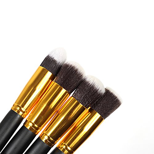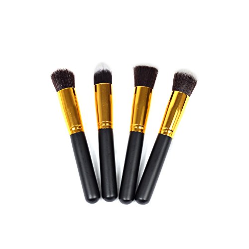 CAETLE Premium Synthetic Hair Makeup Brush Set Cosmetics Foundation Blending Blush Face Powder Brush Makeup Brush Kit (4 Pieces ,Golden Black)