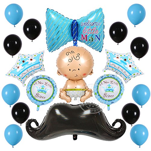 -. Binding : Toy -. Brand : PARTIGOS -. Feature : Welcome Little Man Bow Tie Balloon Decorations Supplies / Dashing Little Man - Mustache Party Balloon Kit / Large Black Mustache balloon .2pcs 18inch blue a little P.R.Ince balloon and 2pcs imperial crown balloon . / 10inch blue and black latex balloon each color 6pcs / Balloons will arrive flat, it all inflate by helium -. IsAdultProduct : 0 -. Label : PARTIGOS -. Manufacturer : PARTIGOS -. Model : PG-8567 -. MPN : PG-8567 -. PartNumber : PG-8567 -. ProductGroup : Toy -. ProductTypeName : TOYS_AND_GAMES -. Publisher : PARTIGOS -. Studio : PARTIGOS -. Title : 19 Pack Welcome Little Man Mustache Boy baby shower balloon For Birthday decoration A Little P.R.Ince imperial Crown Party Supplies