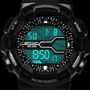 디지탈 기능:날짜/요일/때초/LED조명(화면) 추가 기능:회전 베젤/스톱워치/알람/카운트다운/더블 타임/시보/50m방수/12/24시각 전환 EL 백 라이트 기능이 부착,어두우면 무렵에서도 버튼을 눌러 시간을 곧 압니다.